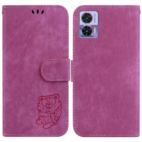 Funda para Motorola Edge 30 Neo y 30 Lite de Cuero con Relieve Little Tiger (Rojo Rosa)