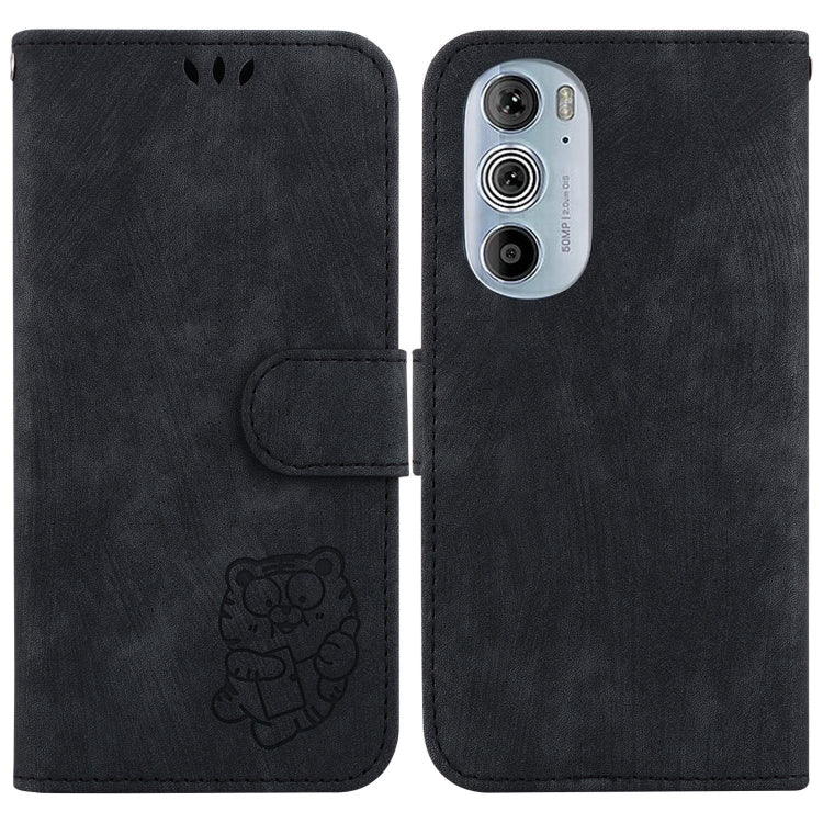 Funda para Motorola Edge 30 Pro / Edge + (2022) de Cuero con Relieve Little Tiger (Negro)