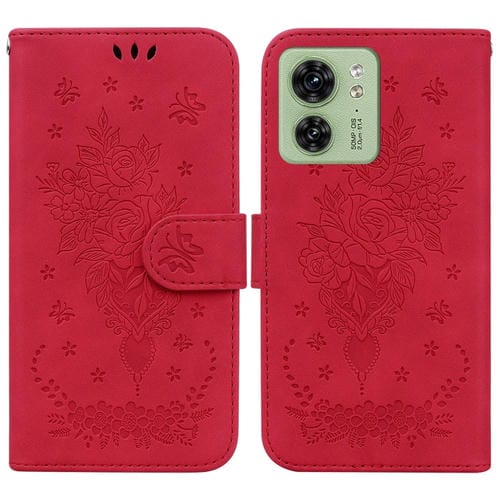Estuche de Cuero en Relieve para Motorola Edge 40 Butterfly Rose (Rojo)