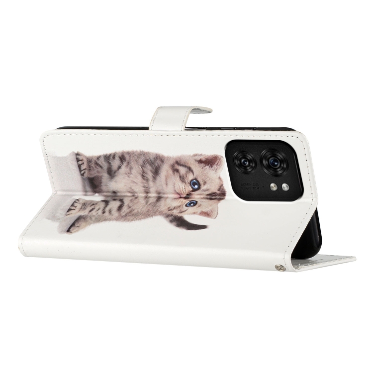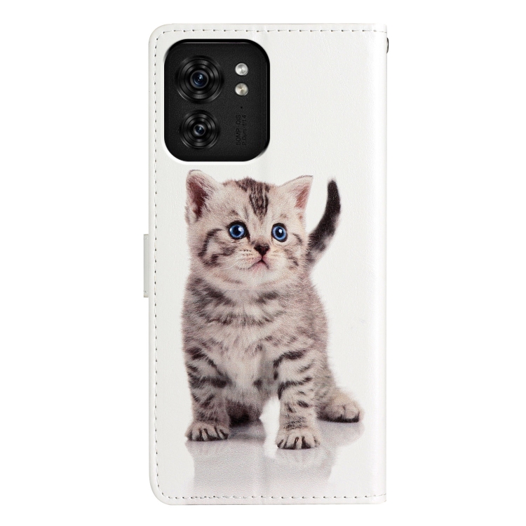 Funda de Cuero para Motorola Edge 40 con Dibujo Coloreado Pequeño Gato Atigrado