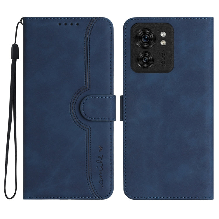 Funda de Cuero para Motorola Edge 40 con Sensación de Piel y Patrón de Corazón (Azul Real)