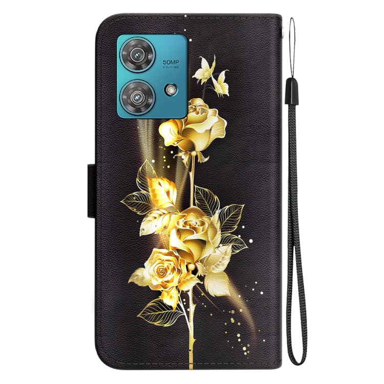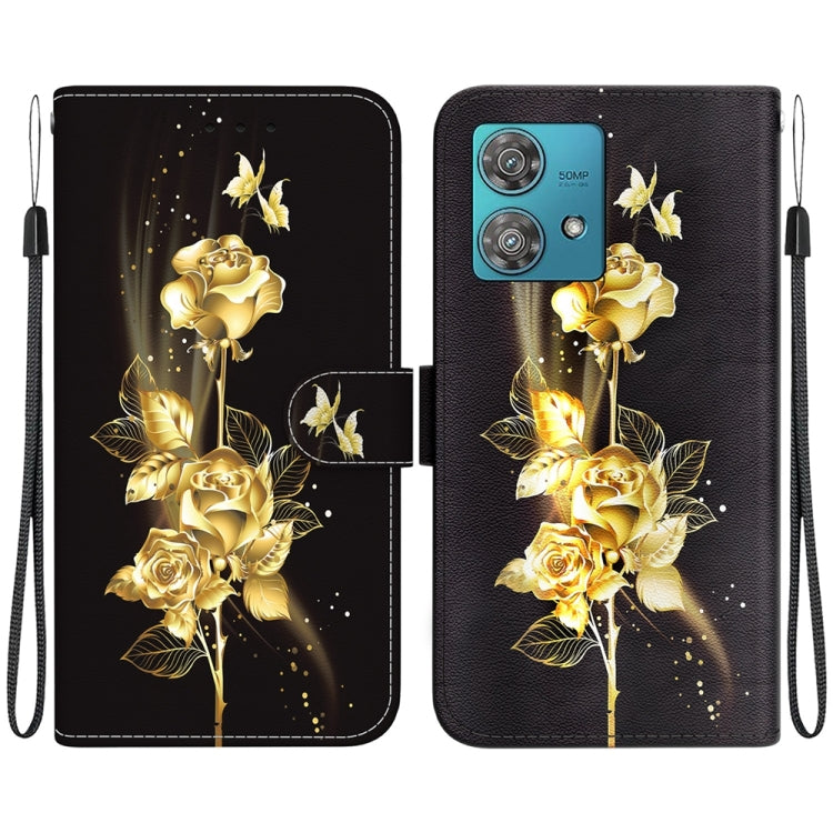 Estuche para Motorola Edge 40 Neo de Cuero con Dibujo Coloreado y Textura de Cristal (Mariposa Dorada Rosa)