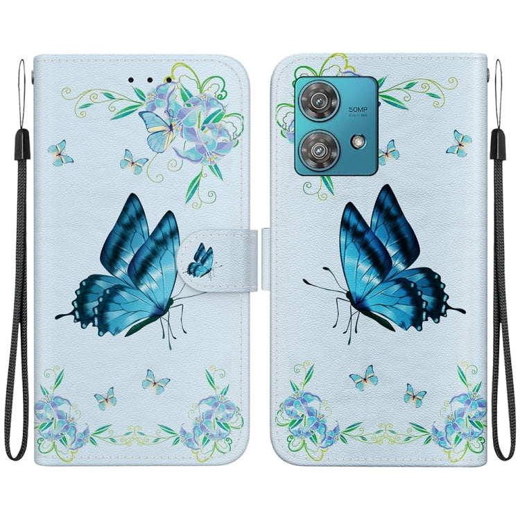 Estuche para Motorola Edge 40 Neo de Cuero con Dibujo Coloreado y Textura de Cristal (Pensamientos Azules)