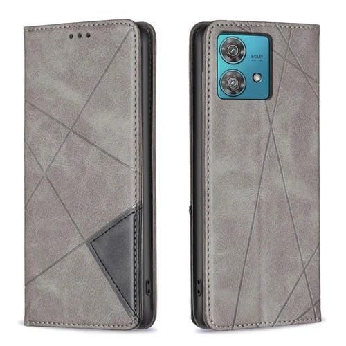 • 1x Funda de Teléfono Motorola Edge 40 Neo Cuero Magnético Textura Rombo (Gris)