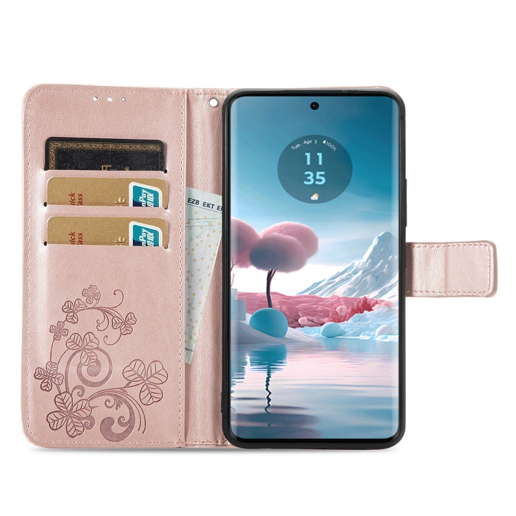 Funda para Motorola Edge 40 Neo de Cuero Repujado con Cierre de Cuatro Hojas (Oro Rosa)