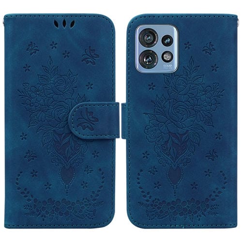 - 1x Estuche para Motorola Edge 40 Pro Butterfly Rose de Cuero en Relieve (Azul)