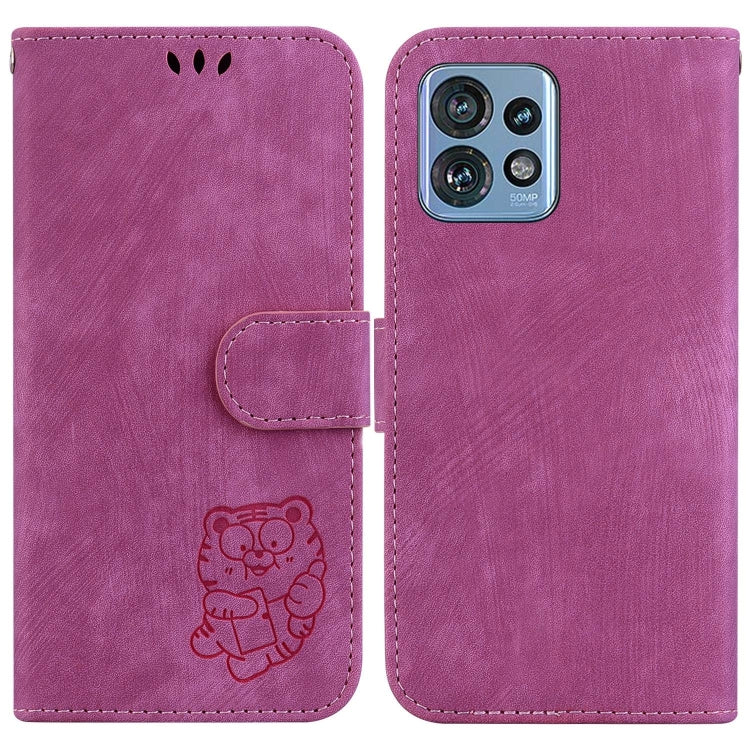 Funda de Cuero para Motorola Edge 40 Pro con Relieve Little Tiger (Rojo Rosa)