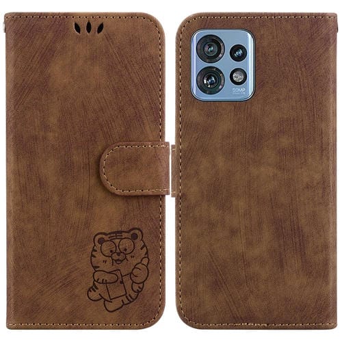 For Motorola Edge 40 Pro Little Tiger Embossed Leather Phone Case(Brown)