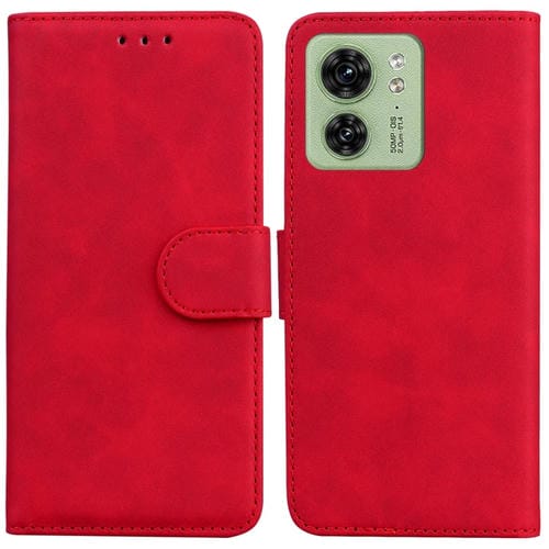 - 1x Funda de Cuero Flip para Motorola Edge 40 Skin Feel Pure Color (Rojo)