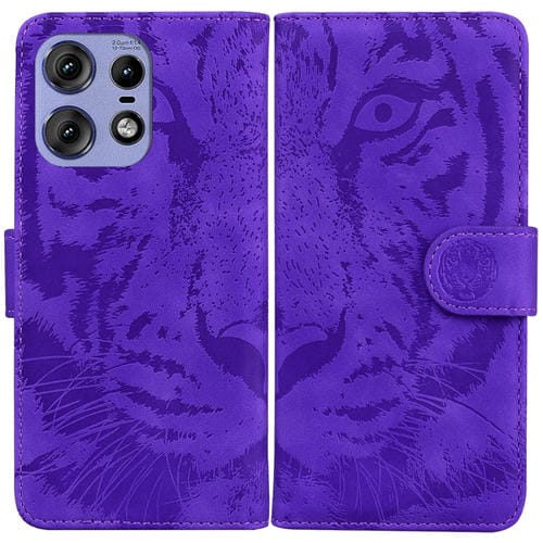 Funda de Cuero para Motorola Edge 50 Pro Tiger con Patrón en Relieve (Púrpura)