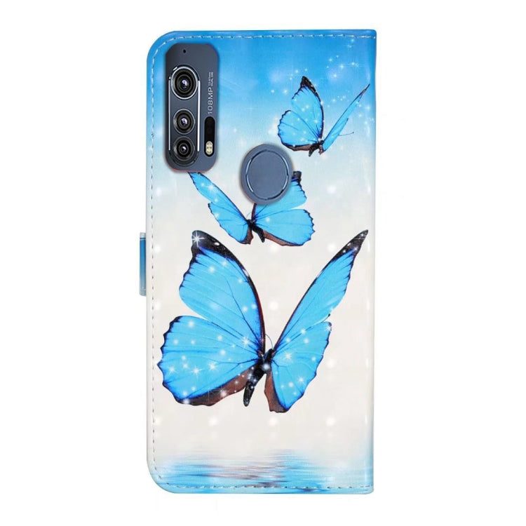 Funda de Cuero para Motorola Edge + con Dibujo 3D en Relieve al Óleo (3 Mariposas)