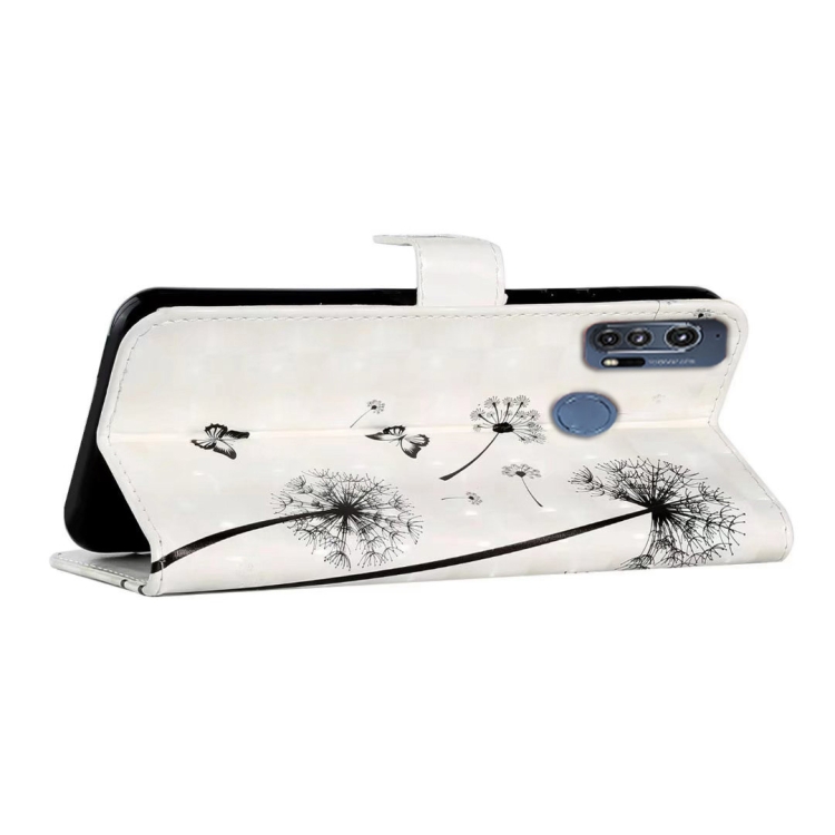 Funda de Cuero para Motorola Edge + con Dibujo 3D en Relieve al Óleo (Pareja de Diente de León)