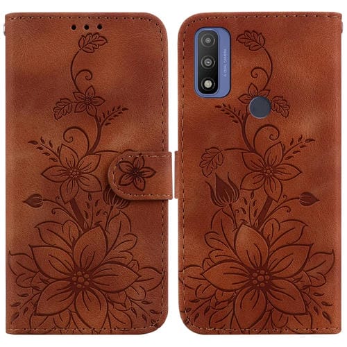 For Motorola G Pure Lily Embossed Leather Phone Case (Brown)