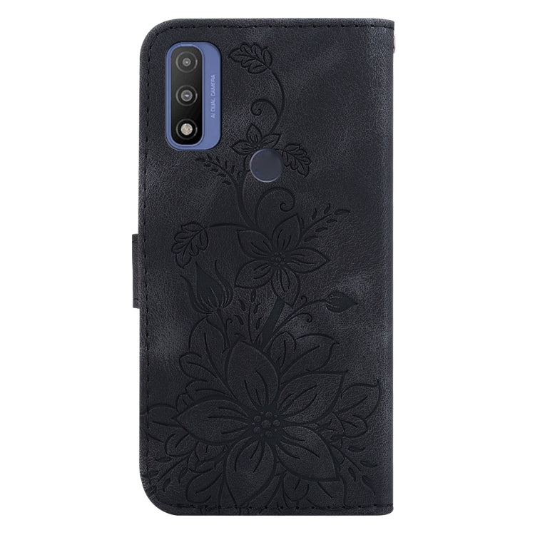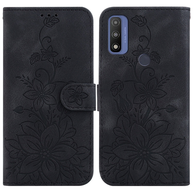 Funda de Cuero en Relieve para Motorola G Pure Lily para Teléfono (Negro)
