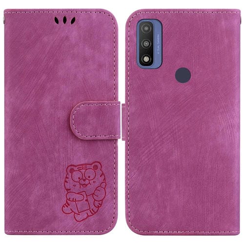 For Motorola G Pure Little Tiger Embossed Leather Phone Case(Rose Red)