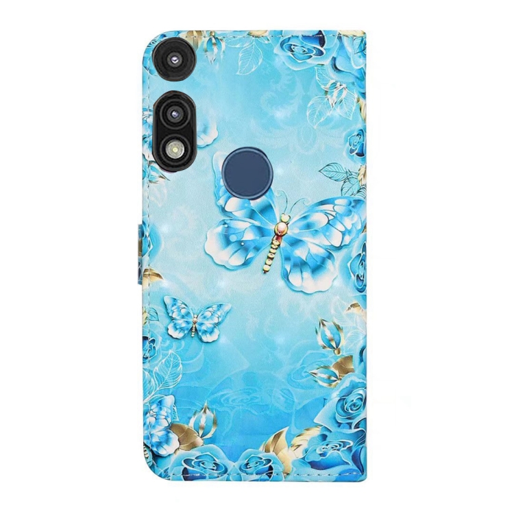 Funda de Cuero para Motorola Moto E 2020 con Dibujo 3D en Relieve al Óleo (Mariposas Azules)