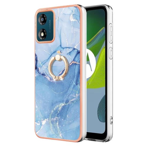 • 1x Caja para Motorola Moto E13 IMD Doble Cara Mármol Galvanizado con Anillo (Azul)