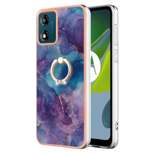 - 1x Caja de Teléfono IMD doble cara mármol galvanizado con anillo para Motorola Moto E13 (Púrpura)