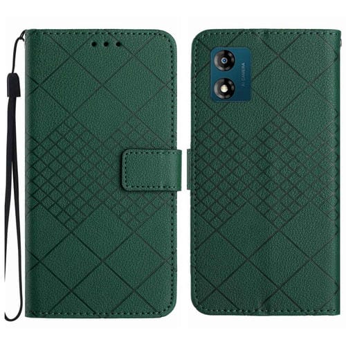 - 1x Funda de Cuero para Motorola Moto E13 con Textura de Rejilla Rómbica (Verde)