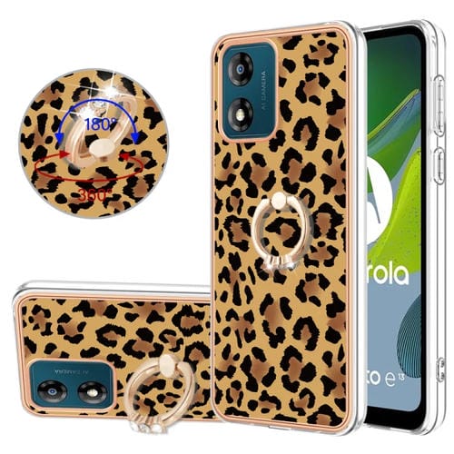 - 1x Funda Motorola Moto E13 Galvanoplastia Doble Cara con Soporte para Anillo (Leopardo)