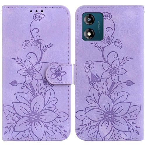 Funda de Teléfono Motorola Moto E13 Lily Cuero en Relieve (Púrpura)
