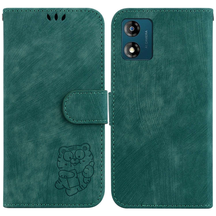 Funda de Cuero para Motorola Moto E13 Little Tiger en Relieve (Verde)
