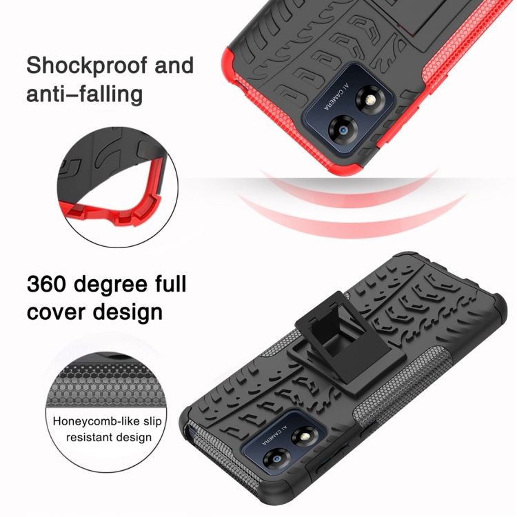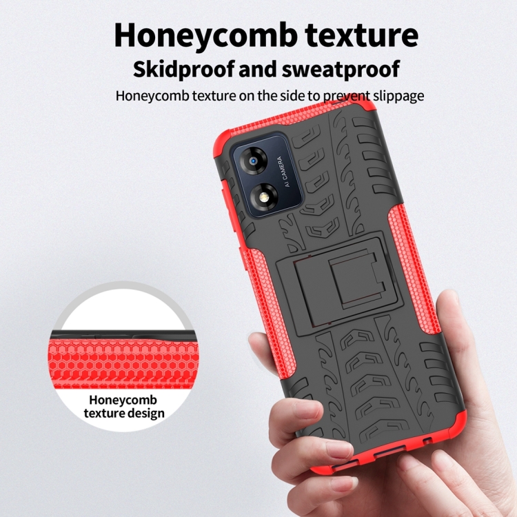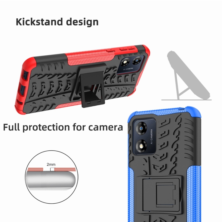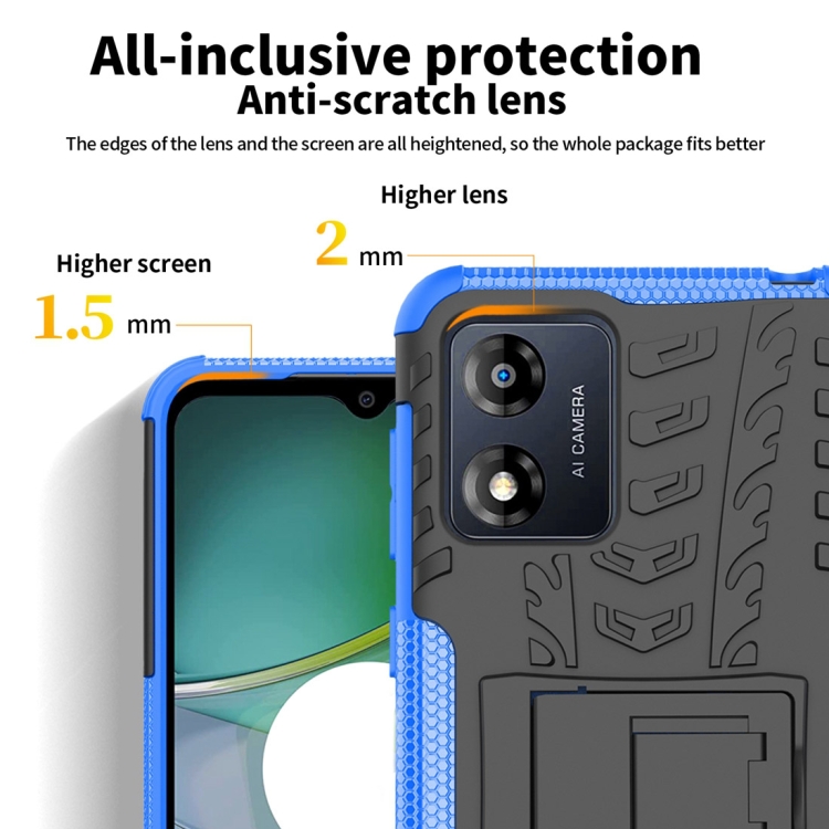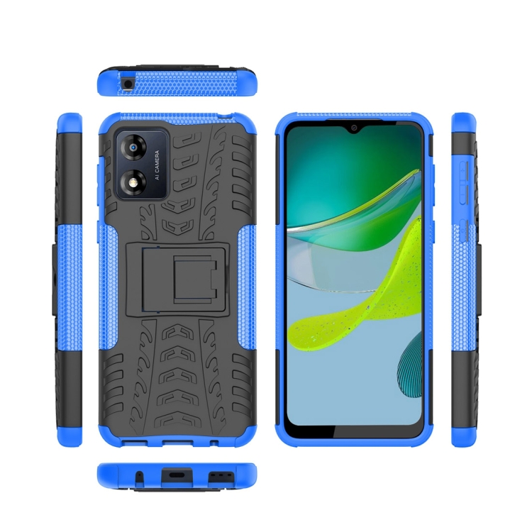 Funda para Motorola Moto E13 TPU + PC con Soporte y Textura Tire (Azul)