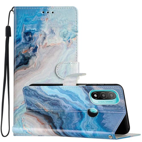 - 1x Estuche para Teléfono Motorola Moto E20 E30 E40 Cuero Dibujo Coloreado (Mármol Azul)