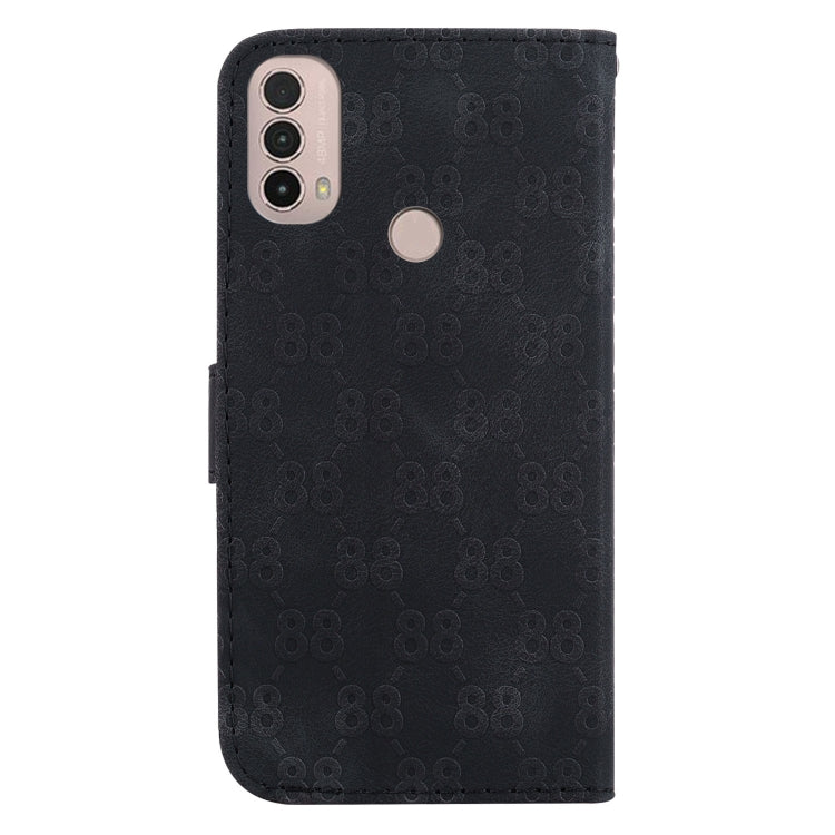 Estuche para Motorola Moto E20 E30 E40 de Cuero en Relieve con Doble Forma de 8 (Negro)