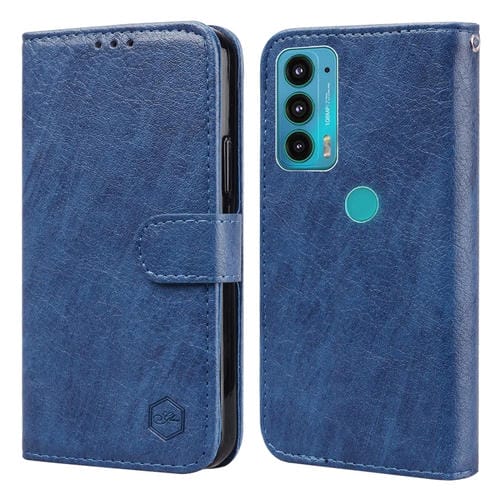 Funda para Motorola Moto E20 E30 E40 PU + TPU Textura Cuero Aceitoso (Azul Oscuro)