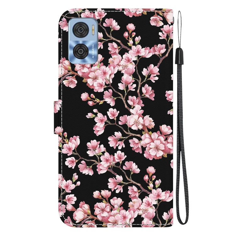 Funda para Motorola Moto E22 / E22I de Cuero con Dibujo Coloreado y Textura de Cristal (Flor de Ciruelo)