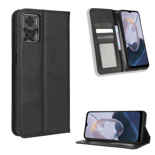 Funda de Cuero para Motorola Moto E22 / E22I con Hebilla Magnética y Textura Retro (Negro)
