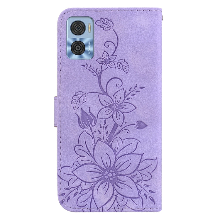Funda para Motorola Moto E22 / E22I Lily de Cuero en Relieve (Púrpura)