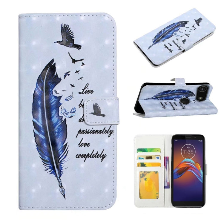 Funda de Cuero para Motorola Moto E6 Play con Dibujo 3D en Relieve al Óleo (Pluma Azul)