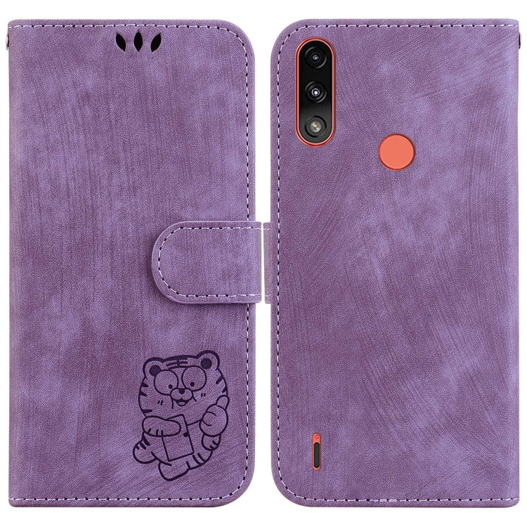 Funda para Motorola Moto E7 Power / E7I Power de Cuero con Relieve Little Tiger (Púrpura)