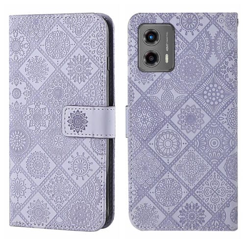 Funda de Cuero para Motorola Moto G 2023 con Patrón en Relieve Estilo Étnico (Púrpura)