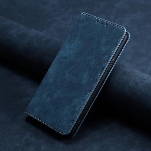 Funda de Cuero Magnética para Motorola Moto G 5G 2022 con RFID y Cepillo Antirrobo (Azul)