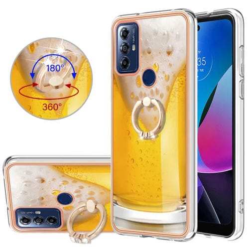 - 1x Caja para Motorola Moto G Play (2023) IMD doble cara galvanizada con Soporte para anillo (Cerveza de Barril)