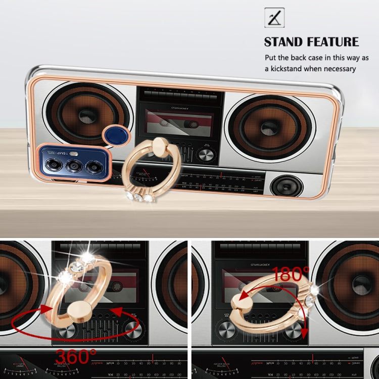 Funda para Motorola Moto G Play 2023 Galvanoplastia IMD Doble Cara con Soporte para Anillo (Radio Retro)