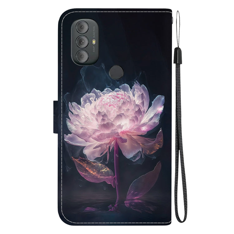Estuche de Cuero para Motorola Moto G Power 2022 con Dibujo Coloreado y Textura de Cristal (Peonía Púrpura)