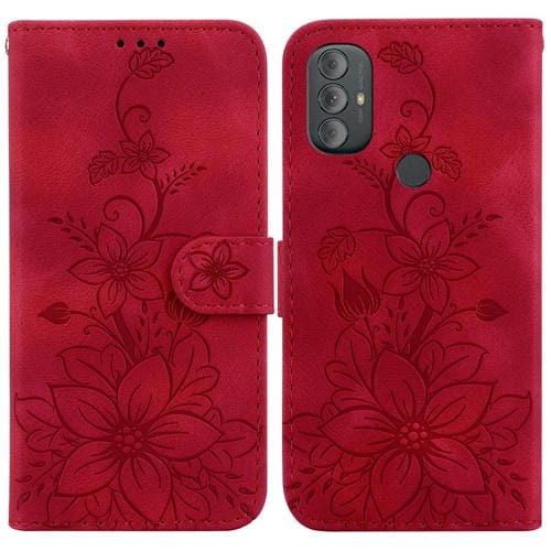 Funda para Motorola Moto G Power 2022 de Cuero con Relieve Lily (Rojo)