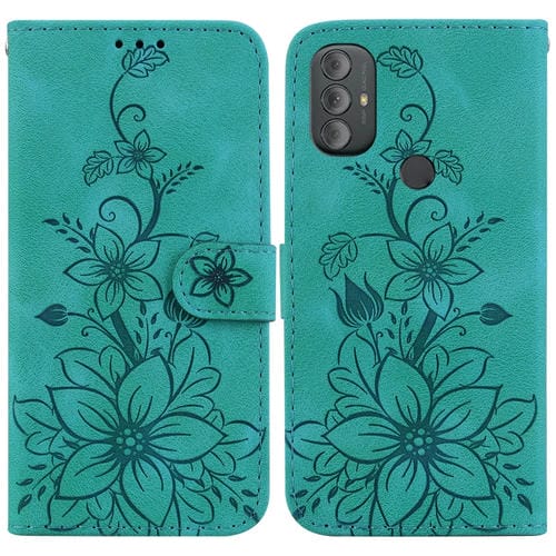 Funda para Motorola Moto G Power 2022 de Cuero con Relieve Lily (Verde)