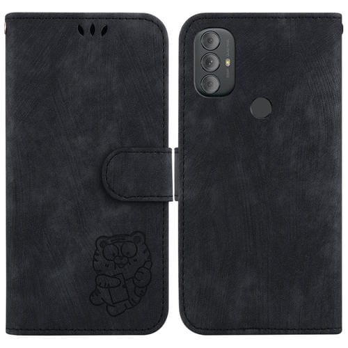 For Motorola Moto G Power 2022 Little Tiger Embossed Leather Phone Case(Black)