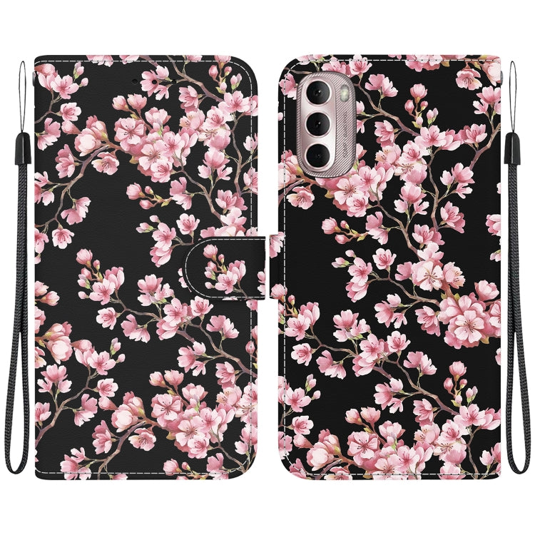 Estuche de Cuero para Motorola Moto G Stylus 4G 2022 con Dibujo Coloreado y Textura de Cristal (Plum Bossom)