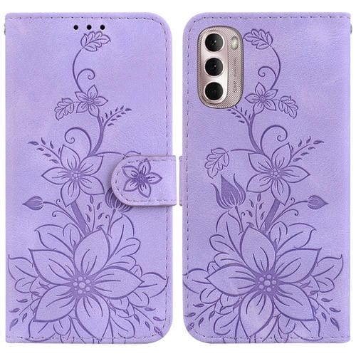 Funda de Cuero con Relieve Lily para Motorola Moto G Stylus 4G (2022) (Púrpura)