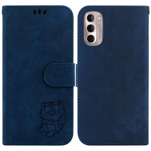 For Motorola Moto G Stylus 4G 2022 Little Tiger Embossed Leather Phone Case(Dark Blue)
