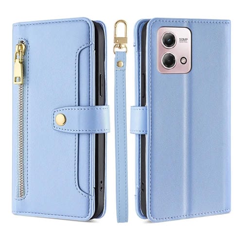 Funda de Cuero para Motorola Moto G Stylus 4G 2023 Lite con Textura de Oveja y Cremallera (Azul)