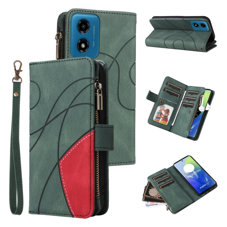 Funda de Cuero para Motorola Moto G04 / G24 con Billetera, Cremallera y 9 Ranuras para Tarjetas (Verde)