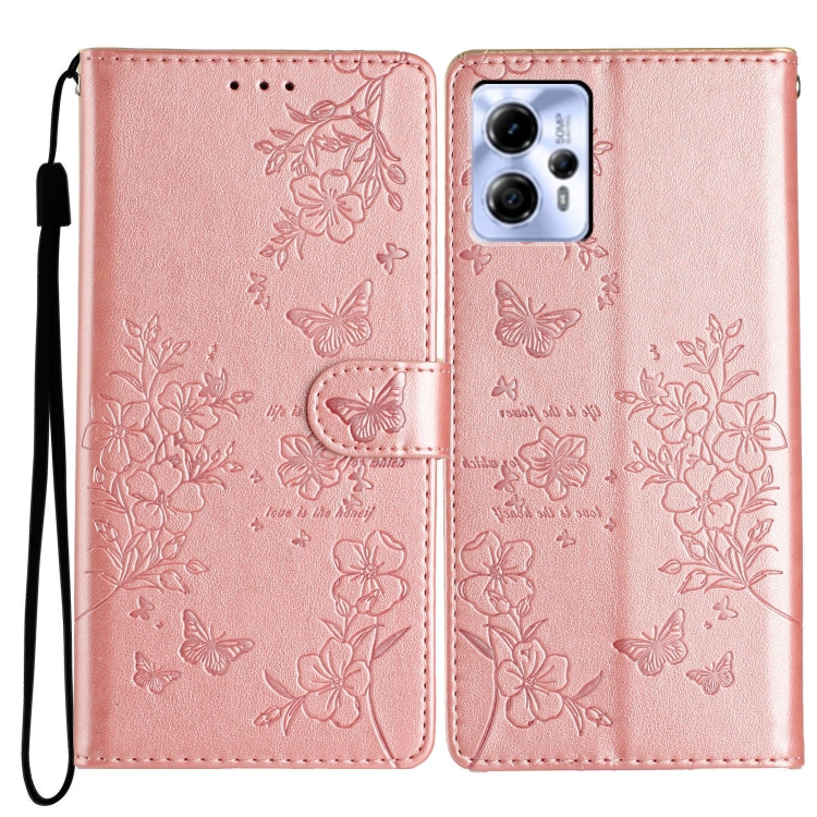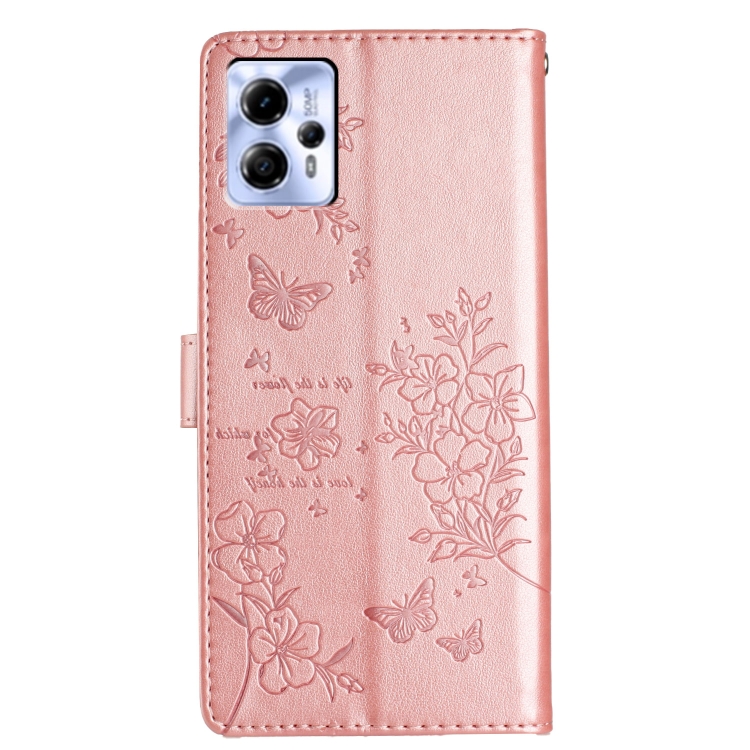 Funda de Cuero para Motorola Moto G13 y G23 con Mariposas y Flores (Oro Rosa)