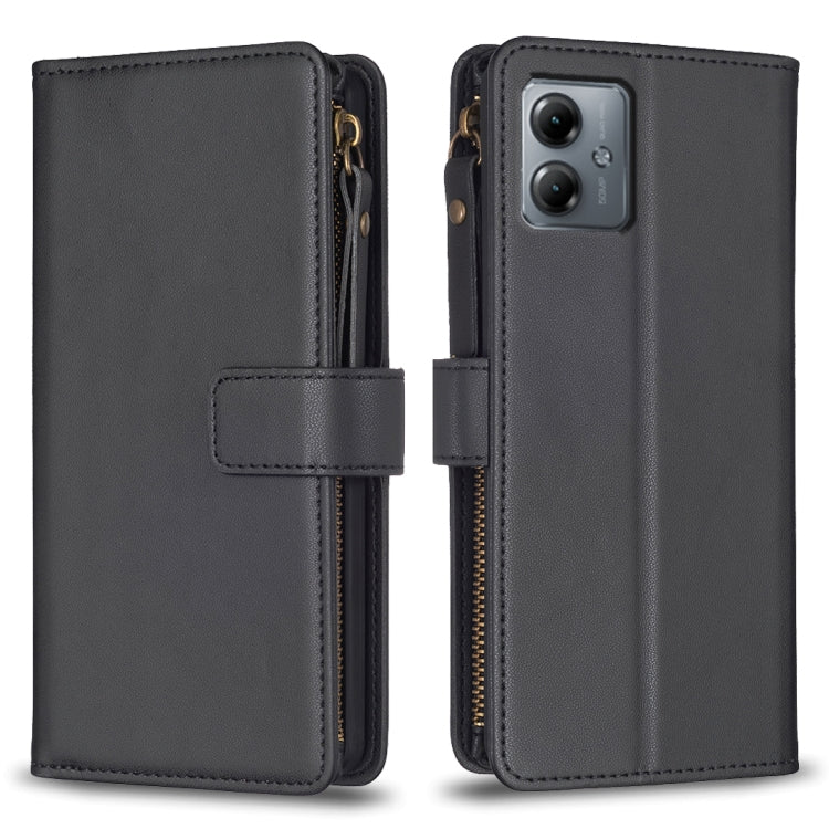 Funda de Cuero para Motorola Moto G14 4G con 9 Ranuras para Tarjetas y Cremallera (Negro)